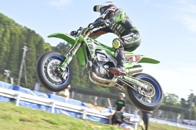 「S1 PROに復帰したルーキーイヤーなので、まだマシンを扱いきれていません。450ccマシンは5年ぶりですから。上位を狙うというより、1レース1レースをしっかりと走り切ることが現在のテーマです。茂原を走るのも久しぶり、以前走った時はダートセクションは1箇所しかありませんでした。それが4箇所まで増えていたので、慣れるのに時間がかかりました。自分はスーパーモト育ちなので、ターマックもダートも得手不得手はありませんが、茂原のコースに関して言えば、以前のアベレージスピードの高いレイアウトの方が面白かったと感じました」