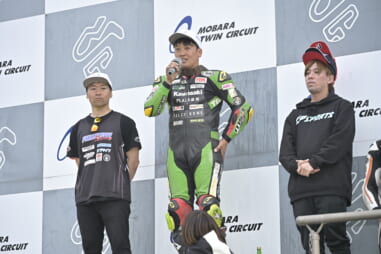 序盤から高山が快走を見せ、2位以下をどんどんと突き放す。だが、その背後では猛烈な追い上げをみせているライダーがいた。最後尾スタートの真木だ。真木は、4周目終了時には5位、5周目には4位に浮上。マシンが暴れても、構わずワイドオープン。怖いもの知らずの走りに、観客が大きく沸いた。ただ、S1 OPENの決勝レース周回数は10周。さすがにトップにまでは届かず、優勝は高山、2位に唐澤、3位に真木でレース1は終了。